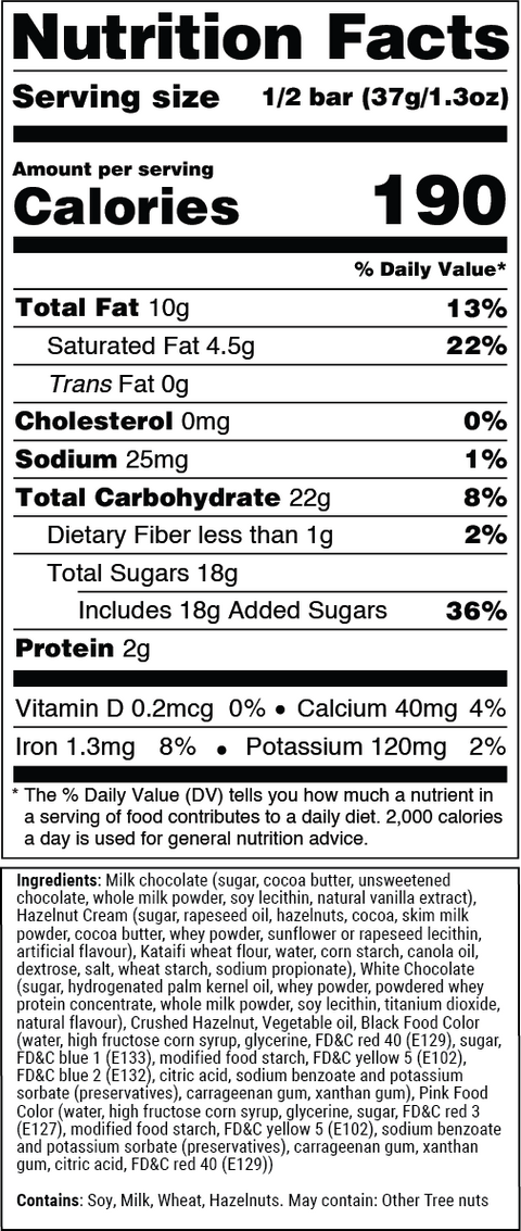 Introducing our Chocolate (Hazelnut Spread) Knafeh Chocolate Bar – a delicious blend of rich, velvety chocolate and the exotic flavours of traditional Middle Eastern knafeh. Each bar features a smooth chocolate shell and creamy yet crunchy Chocolate Hazelnut knafeh centre. Available in Milk or Dark chocolate.