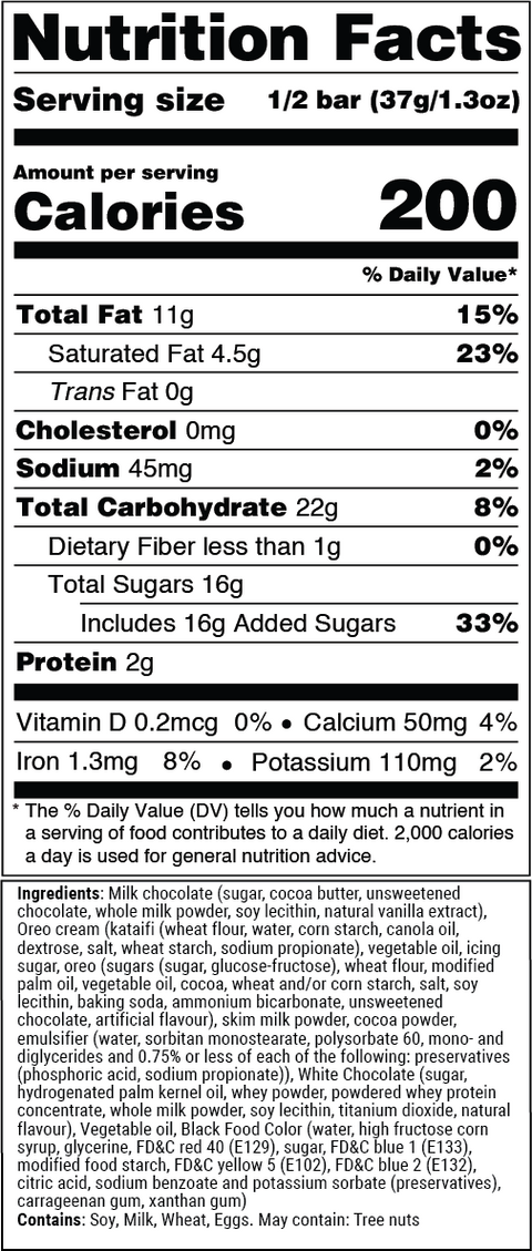 Introducing our Cookies N' Cream Knafeh Chocolate Bar – a delicious blend of rich, velvety chocolate and the exotic flavours of traditional Middle Eastern knafeh. Each bar features a smooth chocolate shell and a crunchy Oreo knafeh center. Available in Milk or Dark chocolate.