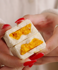 A tropical escape in every bite. This bar features a golden, thick mango filling bursting with juicy sweetness and a smooth, sorbet-like texture that melts on the tongue.